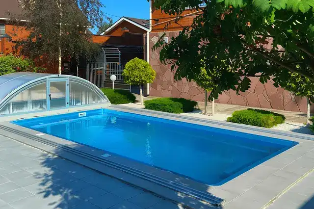 - Повышение безопасности — закрытая поверхность защищает детей и животных от случайного попадания в бассейн.